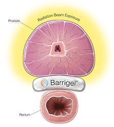 When inserted, Barrigel creates space between the prostate and the rectum, moving the healthy organ out of radiation beam exposure.1